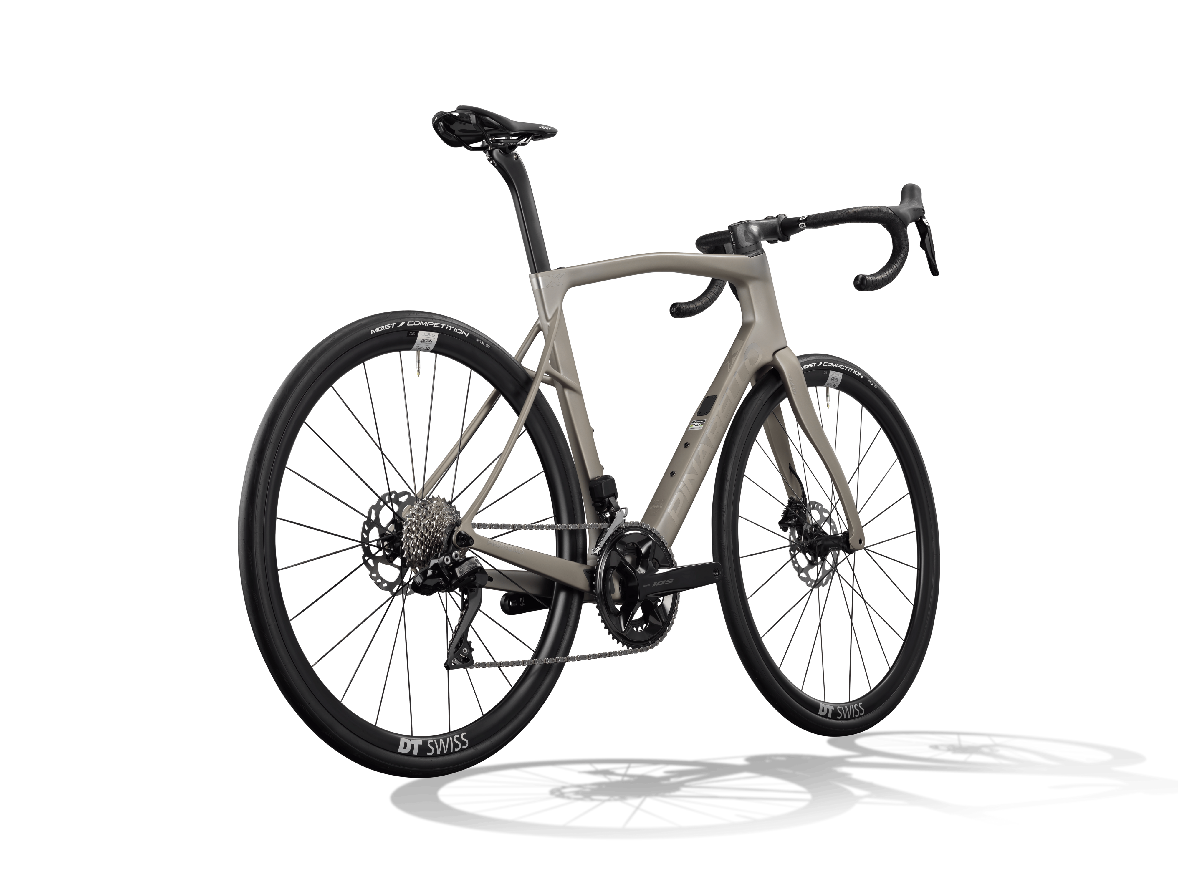 Den Shimano 105 Di2 12-speed geargruppe leverer hurtige, præcise og pålidelige gearskift – perfekt til alt fra tempoet på flade sektioner til tekniske stigninger. Di2-systemet sikrer lav vedligeholdelse og ensartet performance i alle forhold.